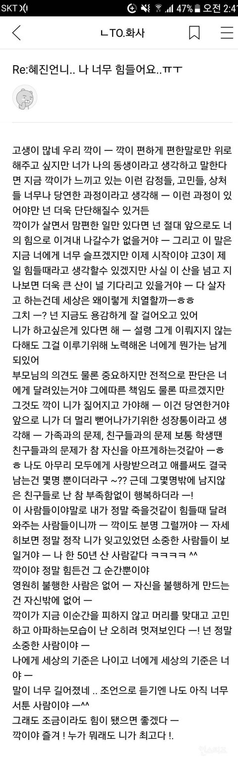 나한테 써준것도 아닌데 위로받음. 감동ㅠㅠ