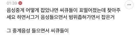 저런거 하나하나 다 잡으면 끝이 없음.. 불법인건 맞는데 아이돌 파는 사람들 다 저런거 소비하잖아 사실 홈마짤도 불법이고 방송 캡쳐해서 움짤 만드는 것도 다 불법임 근데 이걸 막으면 홍보도 유입도 판 유지도 안됨 그래서 소속사에서 암묵적으로 쉬쉬해줌 음성 생중계라면 말 그대로 콘서트 못 가는 팬들만 즐겼을게 뻔한데 경찰서로 넘길 필요가 있나 싶음 음성 생중계 들어본 사람들은 알겠지만 제대로 들리지도 않고 8할은 함성소리나 지지직 거리는 소리임 그걸 일반인이 들을 이유는 전혀 없음 그냥 못가는 팬들이 아쉬워서 그거라도 듣는거지... 난 이렇게까지 할 일인지 잘 모르겠다