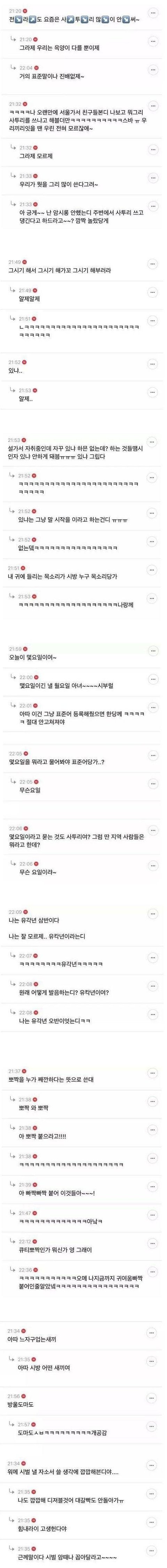 나 서울태생인데 외할머니가 전라도분이시라 어릴적에 듣고자란거 나도모르게 쓰고있는거 많더라...스무살인데 나 몇요일이 사투린것도 고3때 처음 알았어 아무도 뭐라고 안하길래 표준어인줄 알았음ㅋㅋㅋㅋㅋㅋㅋ그리고 조사버린다 라는 말이 있는데 서울말로 부셔버린다? 이런뜻이거든?? 근데 아무도 저말 쓸때 뭔뜻이냐고 묻는애가 없어서 사투린거 몰랐음ㅋㅋㅋㅋㅋㅋㅋㅋ