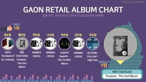 가온차트 2019년 44주차 주간 소매점 앨범차트 1위
