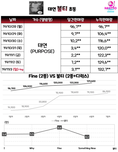 남녀 합산 4위겠지 여솔 초동1위부터 5위까지 다 태연