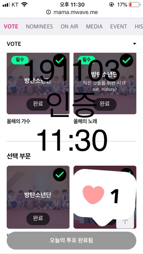 얘들아 자기 전에 투표 마무리!