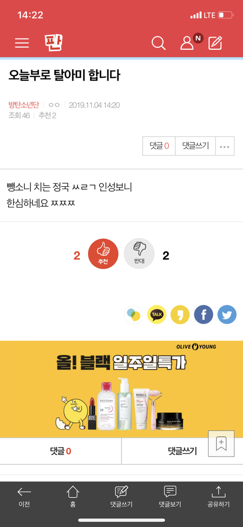 밑밑 오늘부로 탈아미 여기서봐 ㅇㅁㄱ