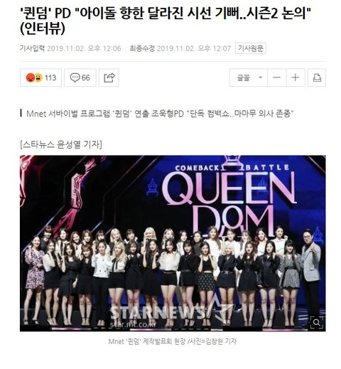CJ 화제성1위 퀸덤 시즌2 논의중