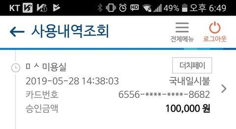 결제 내역은 일부는 이모가 해주셔서 이것만 결제됨.