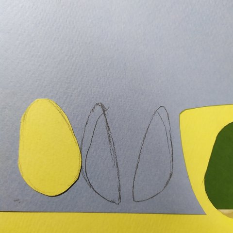 일단 안쪽 꽃잎인 레몬색에 길죽한 달걀모양을 그려주고 잘라줘 모든것은 뒤집어서 사용해 줄거야!!