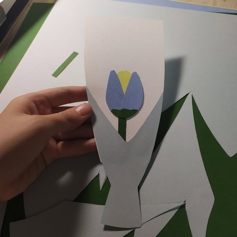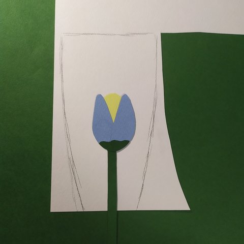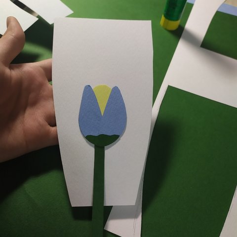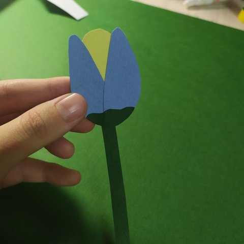 꽃받침을 붙여주고 같은 초록색으로 길게 잘라서 줄기를 붙여줘!!