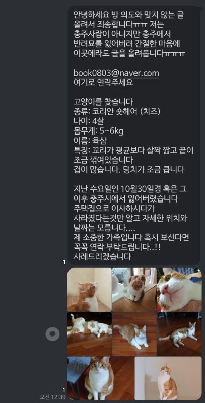제 소중한 가족입니다 혹시 보신다면 꼭꼭 연락 부탁드립니다..!! 사례드리겠습니다
