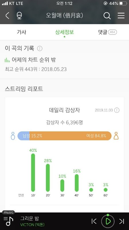 비록 밤이지만 타이틀곡 그리운밤은 39위부터 전곡 차트인까지 ㅠㅠ...