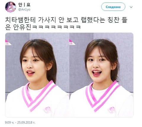 ㅋㅋㅋㅋㅋㅋㅋㅋ이걸 프엑 스쉽즈 춤이랑 비교한다고? 안유진 만능 아이돌인 거 모름? 글구 저 때 가사 다 외운게 아니라 안보고 외워서 하다 중간에 틀렸는데도 자신있게 마무리해서 치타가 칭찬해준 거임