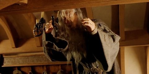 간달프가 너무 낮은 천장에 고생하다가