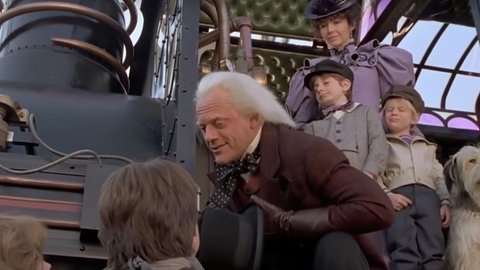 영화의 마지막 장면인 에멧 박사가 1985년 현재의 마티와 클라라와 인사를 나누는 장면에서