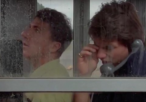 공중전화 박스에서 전화를 하고 있는 찰리(톰 크루즈)를 향해