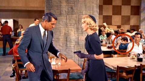 맨 오른쪽에 있는 소년 배우가 곧 발사될 총의 소음을 대비해 미리 귀를 막는 모습이 그대로 나왔다. 꼼꼼하던 히치콕 감독마저 이 부분을 눈치채지 못했다.