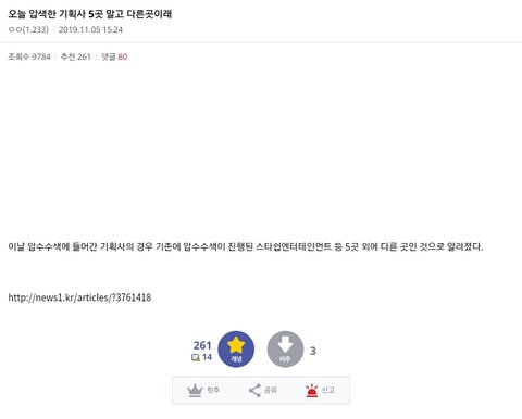 오늘 기획사 한곳 추가압색됨 ㅇㅇ