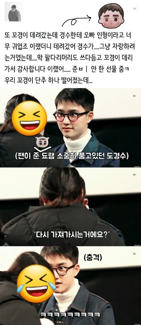 팬이 들고 온 꼬마경수 데려가고