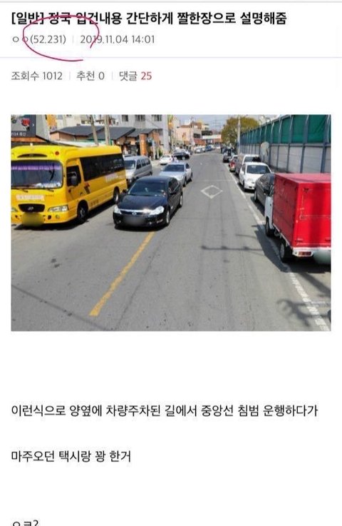 3. 그러자 사고가 불법주차 차량 때문이라고 하는 아미들의 주장디씨에서 이런 글이 올라옴.