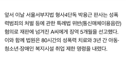 악플러 징역 5개월 감옥행. 치료. 취업제한. 신상공개
