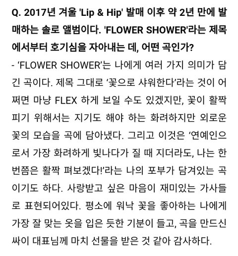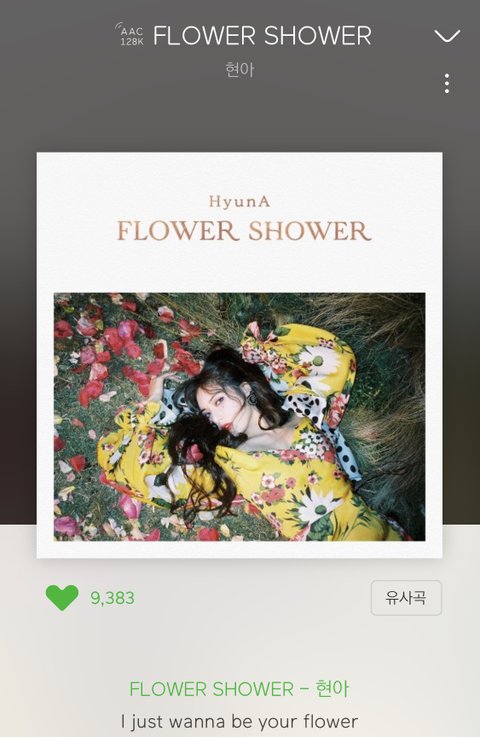 플라워샤워 너무 좋아ㅠㅠㅠㅠㅠㅠㅠㅠ진짜 비트랑사운드 고급지고 뮤비도 확 바뀌고.. 그냥 현아는 사랑이야ㅜㅜ 노래 많이 들어줘ㅎ