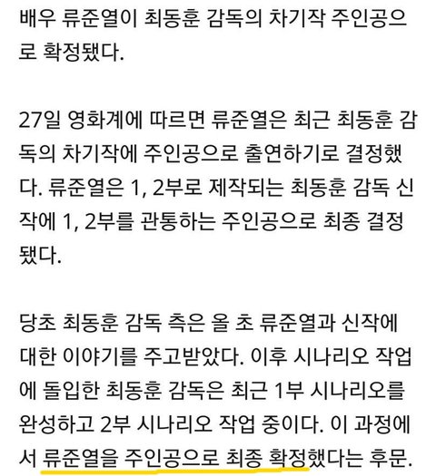 내년 초 촬영 시작 예정이라하는데 최근 기사 보니까 조우진, 김의성 배우 캐스팅 됐다하더라