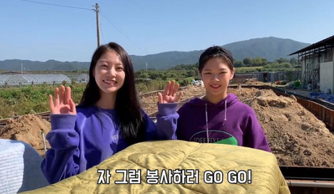 배우 공승연과 트와이스 정연이 봉사하는 모습이 담긴