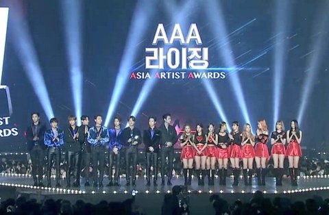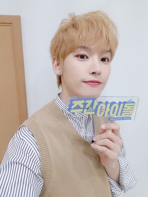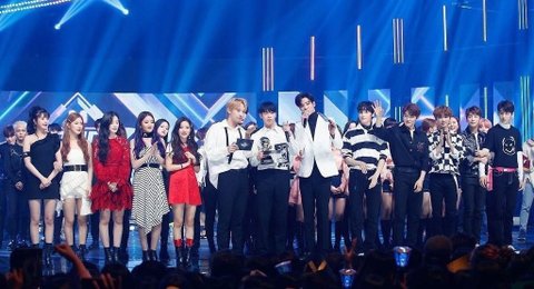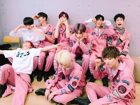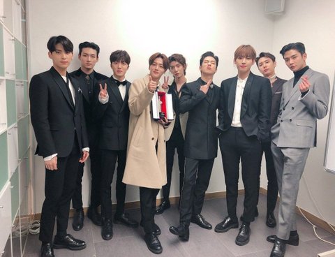여러 아이돌 사이에서 가운데 세 명이 SF9 멤버임