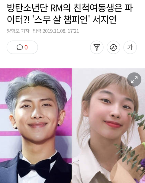 방탄 알엠 친척 여동생이래