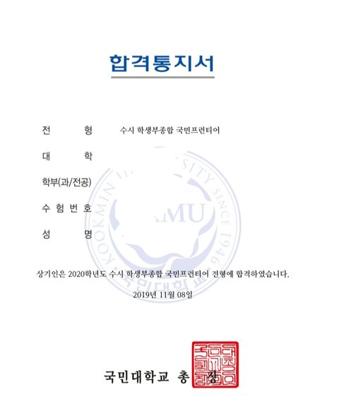 +) 이렇게 많이 축하해줘서 깜짝 놀랐어 정말 고마웡~~~~ 그리고 국민대 가지고는 이런댓글들 있는데 각자 대학에 대한 생각은 다르니 충분히 그럴 수 있다고 생각해ㅎㅎㅎ 나한테는 3년 열심히 노력하고 얻은 결과이고 너무 큰 행복이야 나도 아직 입시가 끝나지 않았지만 최초합의 기쁨을 모두와 나누고 싶었어 모든 친구들이 원하는 대학을 최초합했으면 좋겠다!!!!!! 고3 화이팅!!!!