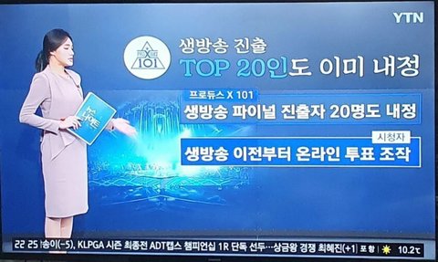 난독임? 온라인투표가 조작이라는 건 시청자 의견이고 지금 밝혀진 건 생방 때 20명의 순위를 미리 정해놨다는 거야 ㅋㅋ 난독인 척 떨깅이들 머리채 잡지 말고 좀 닥치고 있어봐
