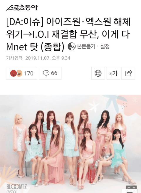 아이오아이 재결합 무산 "모든게 엠넷탓”