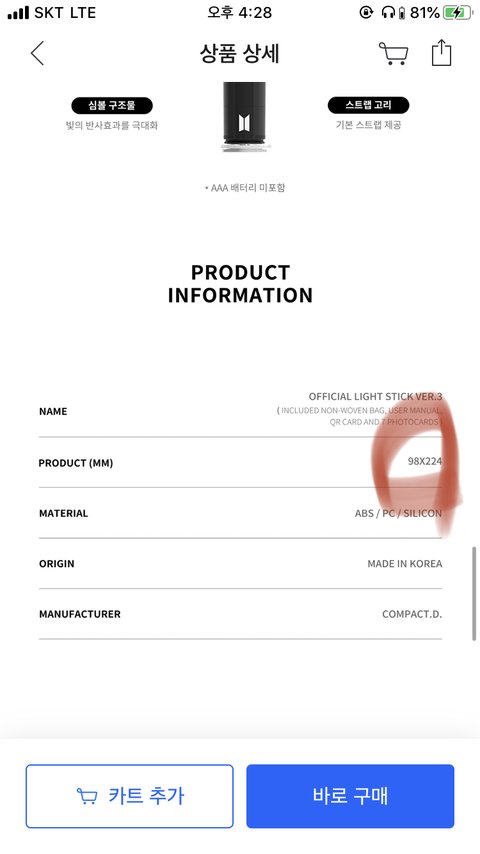 들고 흔드는 아미밤 크기 이거 사면 돼? 98x224mm 였음
