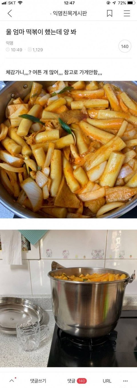 엄마 여행가셔? 남편한테 곰탕 한 솥 끓여놓고 여행가시듯이 자식한테는 떡볶이 잔뜩 만들어놓고 여행가시는거? ㅋㅋㅋ