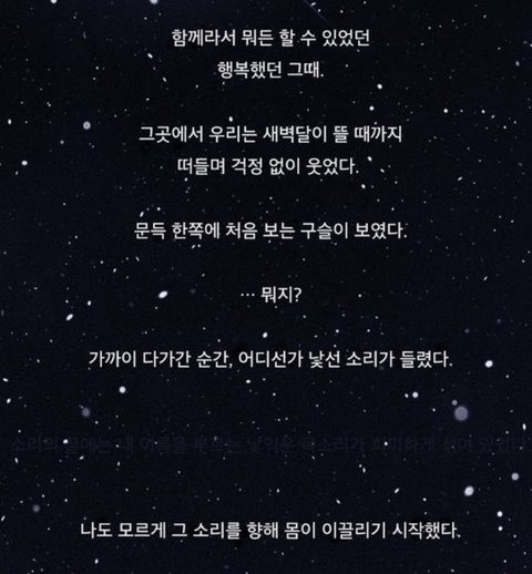 이거 숨겨진 내용 뭐지ㅠㅠ.. 소리의 끝에는 내 이름을 부르는 낯익은 목소리가 희미하게 섞여 있었다