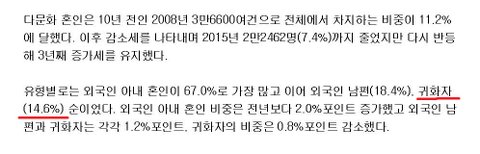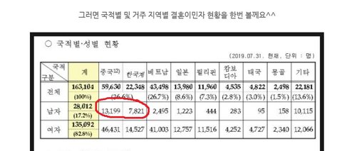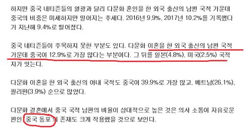 나머지 40%도 상당수 귀화자 중국여자와의 결혼