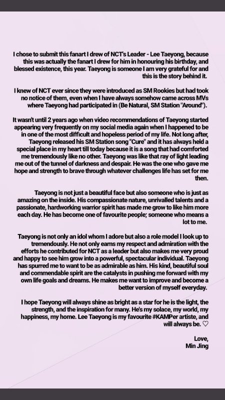 태용이 팬아트 올리신 외국팬분 사연이래ㅜㅜ태용이가 사연도 알게되었으면 좋겠다