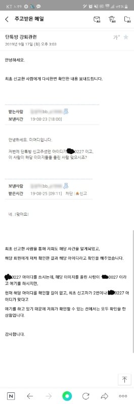 강퇴 당한 날은 8월 22일 마지막 메일을 보낸 날은 9월 18일인데 저는 아직도 어떠한 답장도 받지 못했고 쪽지 또한 계속 무시당하고 있는 상황입니다.