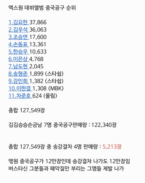 송강결차 4명 다 합해도 5천장 김요한 김우석 한명 판매량 3만장 도 못이기고