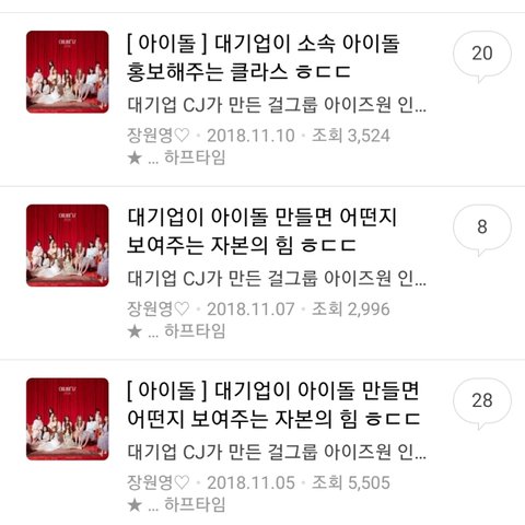 프듀 그룹중에 이런식으로 영업하는거 아위조원팬들 밖에 없음 개오글....
