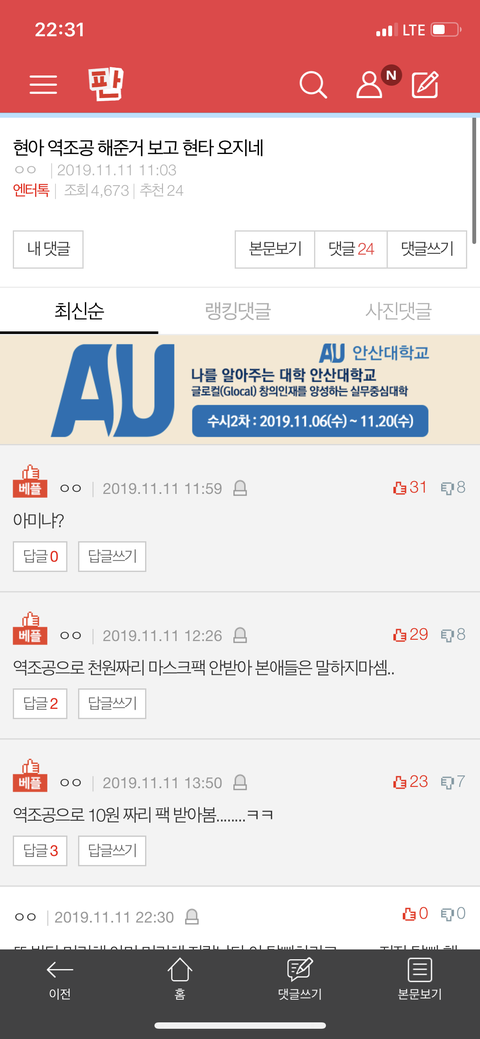 댓글 많은 톡