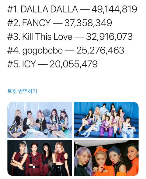 블핑은 국내활동 거의 안했지 않아? 그래도 3위네