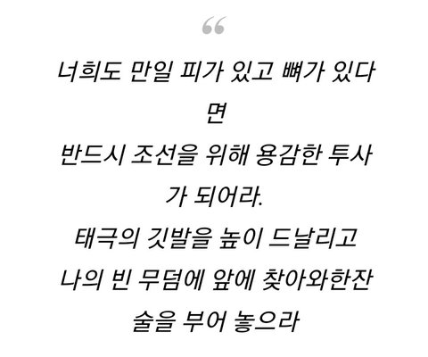 독립운동 할수있냐 진짜 난 벌벌 떨고만 있었을 것 같아 친일파로 변절한 사람들의 변명이 대부분 해방될지 몰랐다라고 하던데 진짜 언제 해방될지도 모르는 어둠속에서 독립운동하고 우리 조국을 위해 희생하셨다는게 진짜 대단함 내가 괜히 깨시민인척 하는걸수도 있는데 개개인이 잘사는것도 중요하지만 난 우리가 대한민국이라는 나라에 대해 1분이라도 생각해봤음 좋겠어