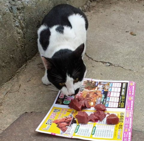 급식소 작업을 위해 왔더니 참치는 안보이고 다른 녀석이 있네요.