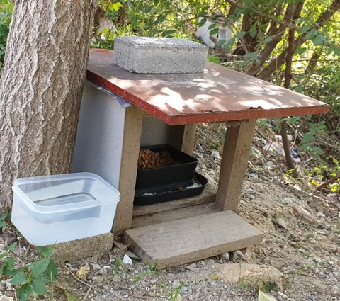 길냥이 급식소를 만들기에 앞서 제가 지난 봄에 만들어 설치했던 급식소에 왔습니다.