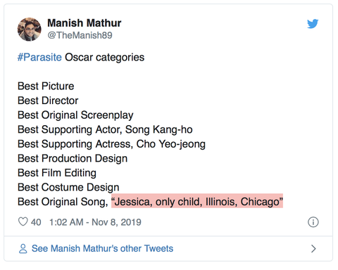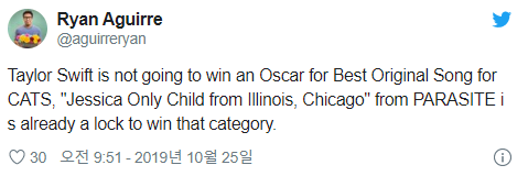 '제시카 송' 때문에 아카데미 주제가상을 받지 못할거라는 유저
