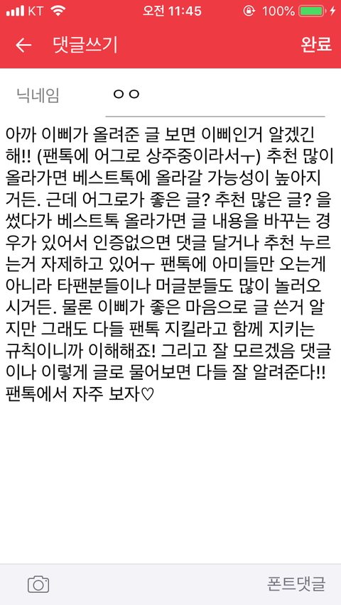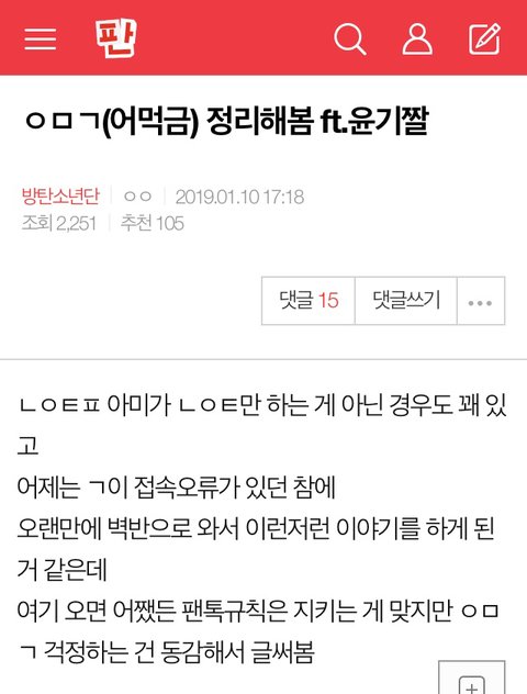 그리고 이거는 아까 팬톡 처음이라던 이삐가 올린 글에 댓 달고있었는데 글삭됐길래...