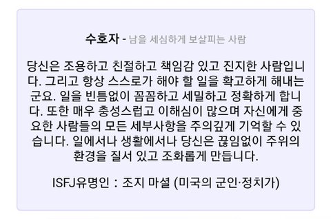 난 ISFJ 수호자야☺