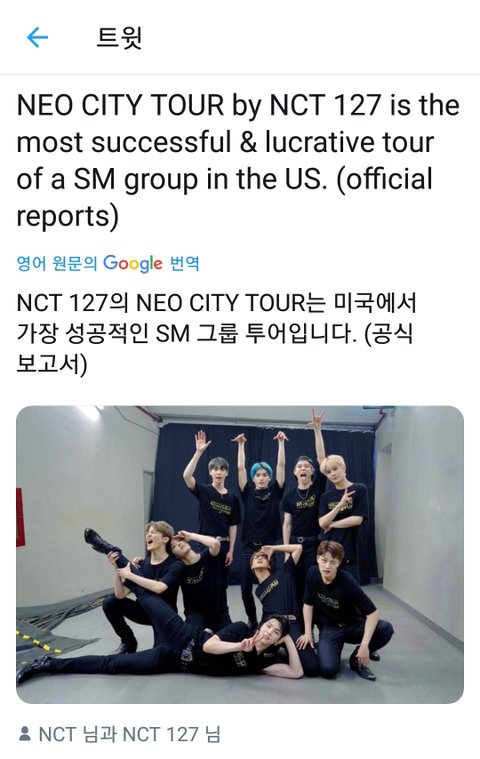 127이 SM 북미투어 최고성과 그룹이랭