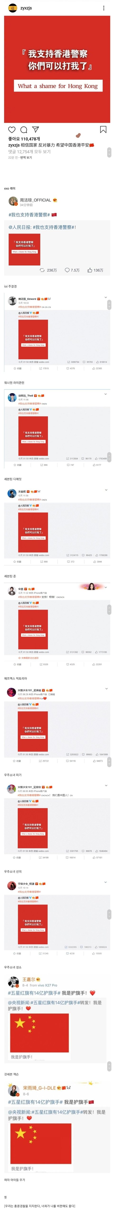 오성홍기 지킨다는 의미가 홍콩민주화 반대의 의미고 홍콩민주화 반대가 홍콩경찰 지지한다는 뜻인데 베댓뭐라는거야 그리고 오성홍기를 지킨다는건 단순히 물리적 훼손에서 부터 지킨다는 의미뿐만 아니라 오성홍기=중국, 즉 온전히 하나의 중국을 지킨다는 의미까지 내포시키고 있고 그 증거로 중국사람들은 하나의 중국이라는 슬로건도 같이 언급하는 사람 많음 근데 그 하나의 중국이라는 슬로건으로 고구려 발해역사 왜곡시켜 자기네 역사라고 우기고 있는거 알지?