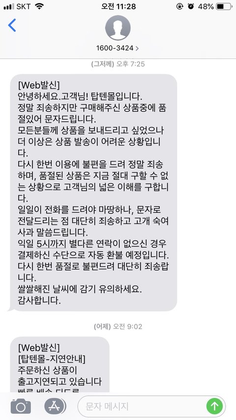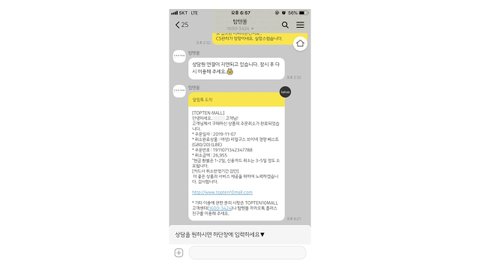 그리고 시간보면 알다시피 저 문자는 오후 7시 25분에 왔음