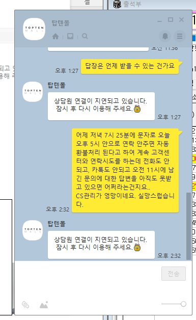 출근하자마자 홈페이지에 있는 카톡 챗? 챗상담? 뭐 그런거 있잖음?